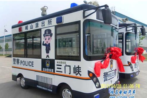 2012年4月27日下午,在河南森源鴻馬電動(dòng)汽車公司長葛生產(chǎn)基地舉行三門峽流動(dòng)警務(wù)室發(fā)車儀式。