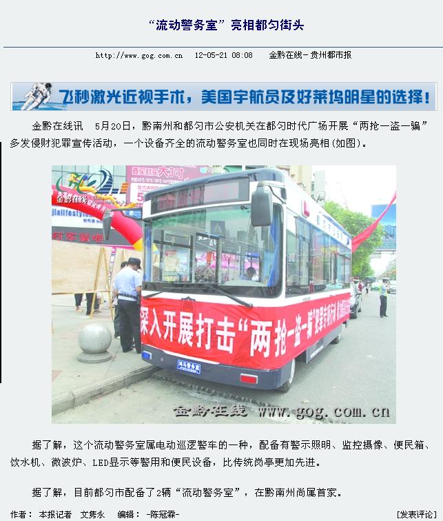 貴州都市報:鴻馬“移動警務(wù)室”亮相都勻街頭