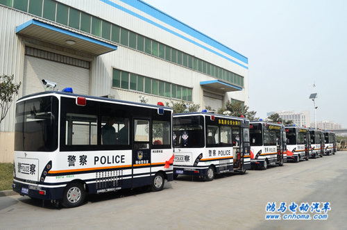 3月19日下午,在河南森源鴻馬電動汽車公司舉行山東聊城東昌府公安分局8臺流動警務室發(fā)車儀式。