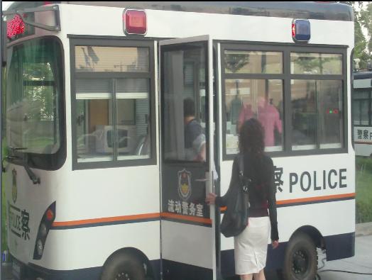 各位企業(yè)家興致勃勃紛紛試乘鴻馬流動警務(wù)室