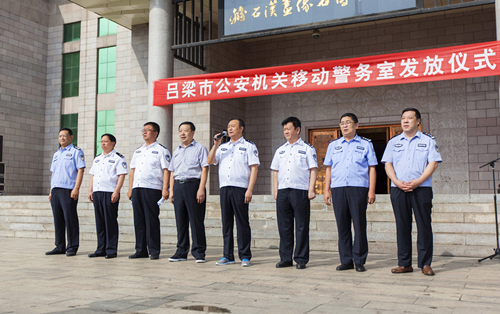 山西呂梁 12臺新型移動警務(wù)室交車啟動儀式