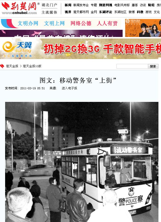 荊楚網(wǎng)報道:鴻馬移動警務室“上街”