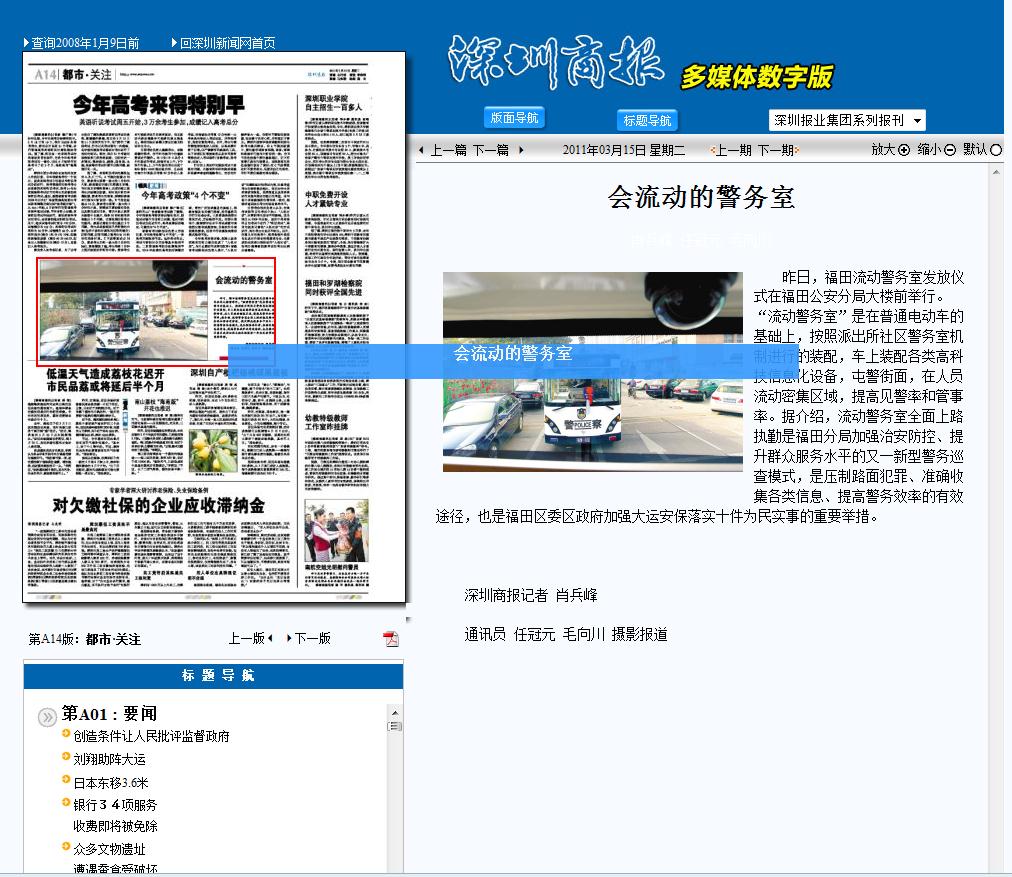 深圳商報(bào) 報(bào)道我公司深圳流動(dòng)警務(wù)室