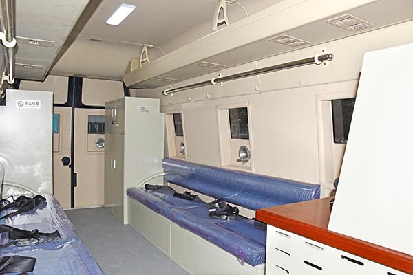 該型運兵車車身具有防彈功能,車頂配備戰(zhàn)術(shù)爬梯方便特警處理高處沖突;車身兩側(cè)安裝防掀車鋸齒,保護車內(nèi)警員不受外部傷害;左右兩側(cè)配備拉手、踏杠方便警員外部巡邏;以解決警力、警械輸送為主要目的,同時配備圖像監(jiān)控和傳輸功能可將現(xiàn)在情況及時傳輸?shù)街笓]中心,可滿足特警對運兵車輛處理應(yīng)急事故的基本需求。