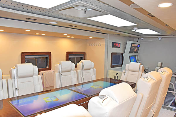 整車具備完善的通訊組網(wǎng)系統(tǒng)、北斗定位系統(tǒng)、視頻會(huì)議系統(tǒng)、音視頻取證系統(tǒng)、移動(dòng)辦公系統(tǒng),可實(shí)現(xiàn)野外開展視頻會(huì)議、決策指揮,能夠快速對(duì)突發(fā)事件進(jìn)行全方位一體化組織、策劃、協(xié)調(diào)及控制。